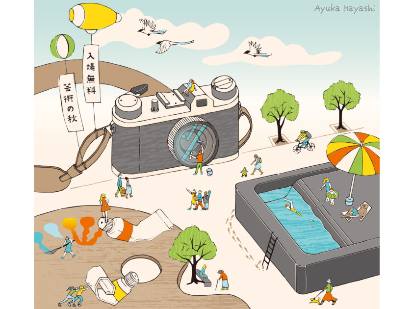 世代や性別、国籍も関係なく、文化を楽しむ人々が暮らす様子を描いています。