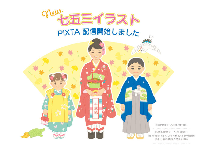 ストックイラスト用に、七五三をテーマに描いたイラストです。
